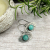 Lovely amazonite cabochons set in textured sterling silver ovals. They measure 1.25” from the top of sterling earwires. Oxidised for a darker finish. Very light weight