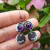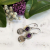 Pretty amethyst set in recycled silver with an embellished disc. I’ve oxidised them for a darker finish and tumbled them so they’re shiny. They measure just over 4cm from top of handmade sterling earwires