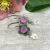 Pale pink jade set in sterling silver flowers with leaf embellishments. Oxidised for a darker finish. Approx 2.25” from the top of sterling earwires